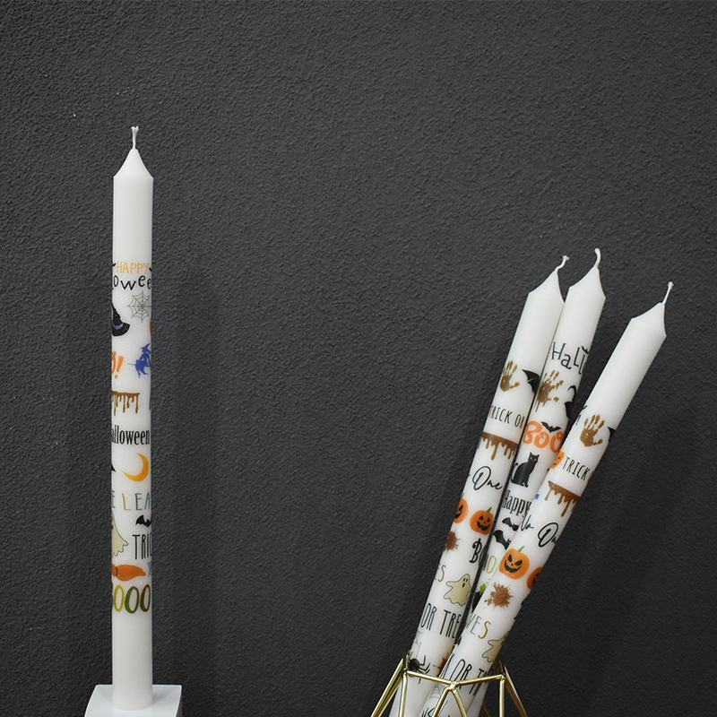 Candittle Halloween Scented Soy Wax Flameless Taper Candle White Taper Custom Packaged Candles Wholesale